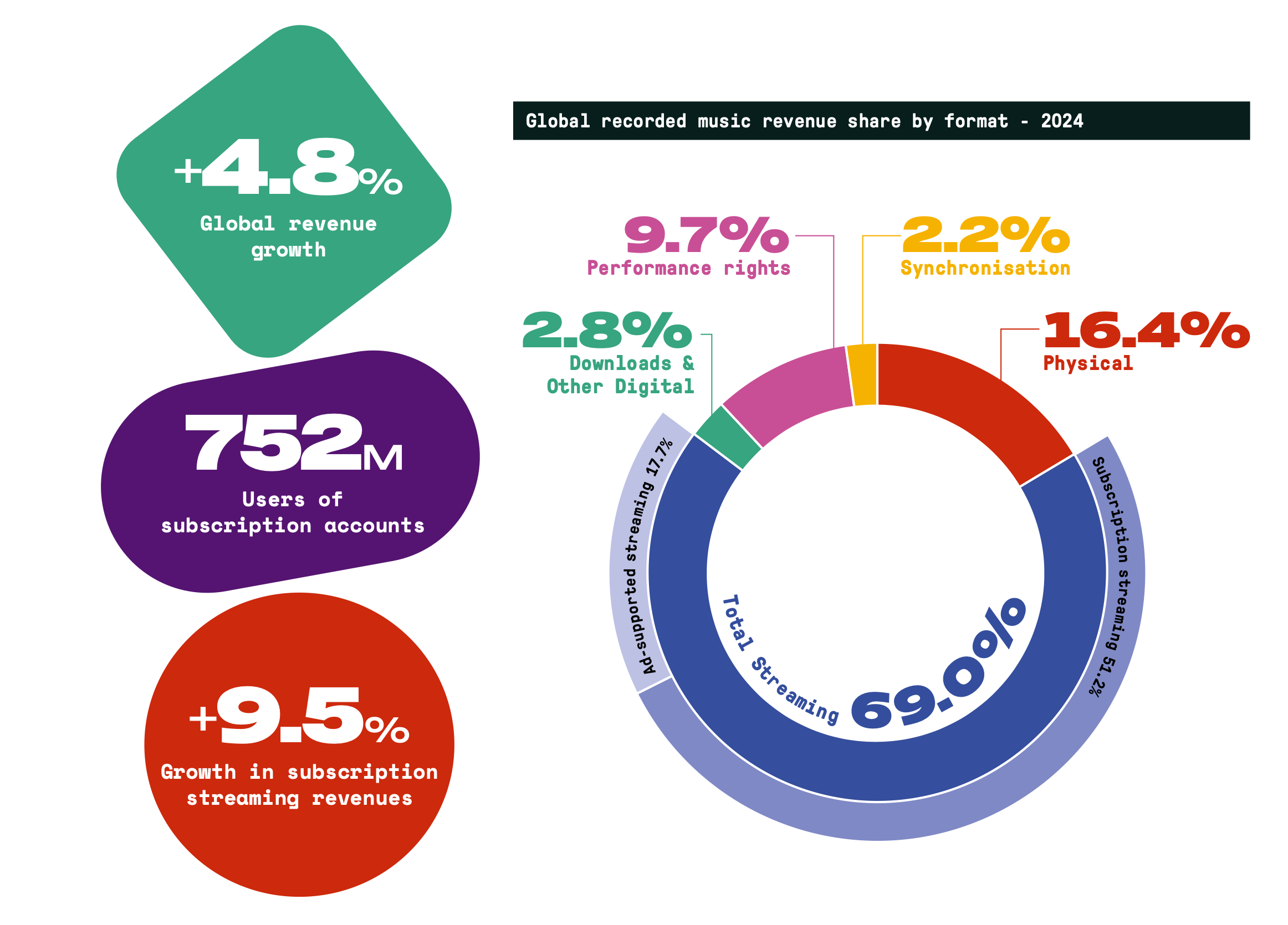 The global recorded music industry has notched up a tenth year of consecutive growth, with revenues rising 4.8% to hit $29.6 billion in 2024, according to IFPI’s ‘Global Music Report’, which was released yesterday.